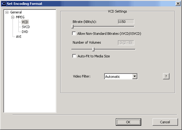 (S)/VCD/DVD or AVI, Click on "Options" once you selected the desired